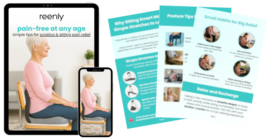 Learn the daily habits, posture adjustments, and easy stretches that amplify the benefits of your Soothe+ cushion. Inside, you’ll find simple tips to keep sciatica, tailbone, and back pain from coming back.